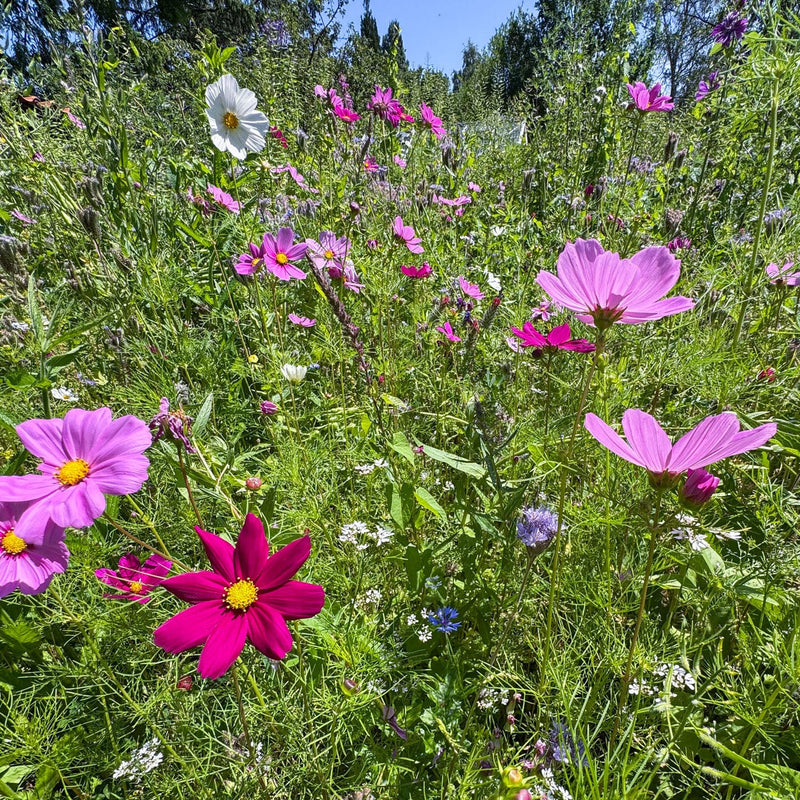 Mid-zomer staat dit zadenmengsel van eenjarige bloemen wel tot een meter hoog! Wat een kleurenpracht zal het zijn. Dit mengsel is samengesteld om lekker kleurrijk te pronken en heerlijk te geuren (ah, dille! hmmm, koriander!). De felgekleurde Cosmea bloeit tot diep in het najaar, terwijl de helblauwe korenbloem al in de zomer kleur geeft. Voor een zonnig plekje.