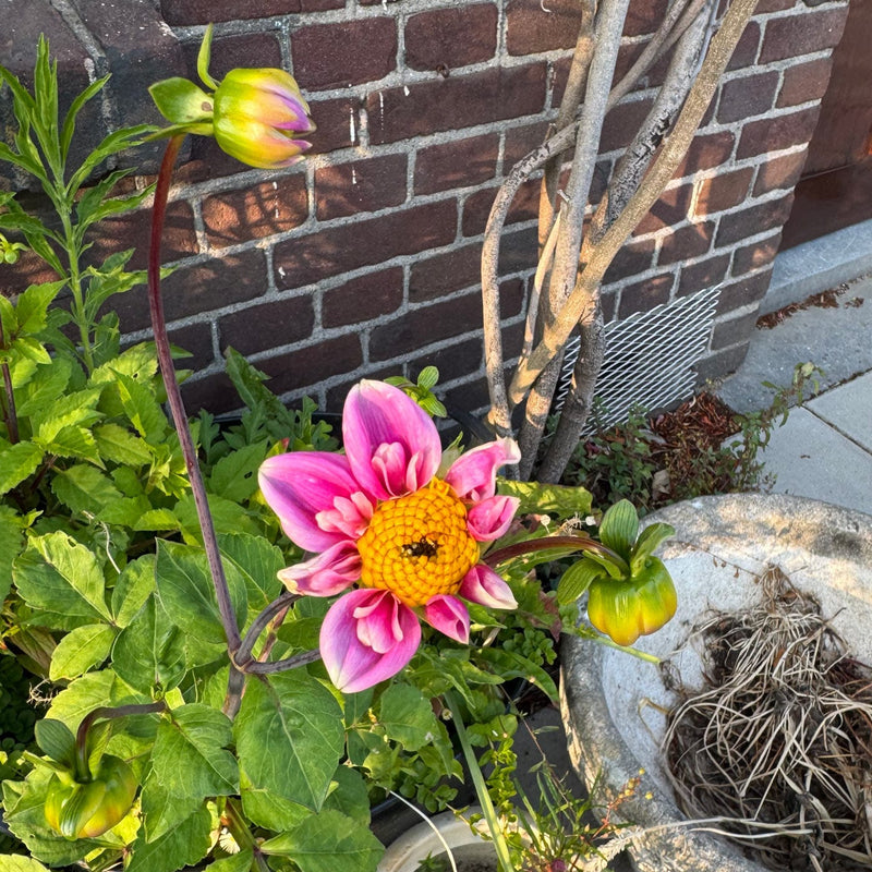 Deze mooie biologische dahlia krijgt mooie roze bloemen in juli, augustus, september en vaak zelfs nog oktober! Hij wordt ongeveer 40 centimeter hoog. Staat goed in de zon of halfzon. Bijen, vlinders en hommels houden er ook van! Ook super voor een pluktuin.
