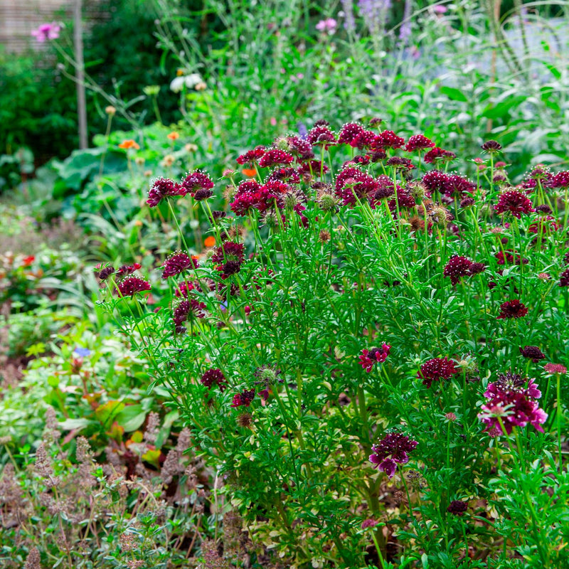 Vlinders op je Duifkruid! Zo mooi! Deze schurftkruid, zoals 'ie ook heet, is wijnrood van kleur. De lange stelen zorgen ervoor dat 'ie het ook goed doen in een vaas bij je binnen.