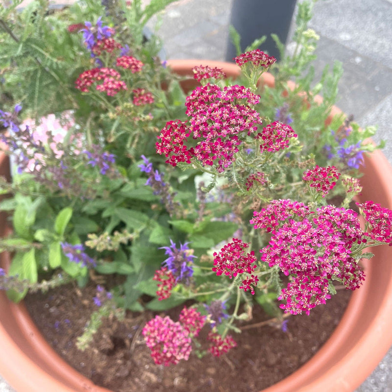 Kersenrood! Deze vaste plant bloeit in juli, juni, augustus en zelfs nog september met schermen van kleine bloemetjes. Door de felle kleur van de bloemen trekt de plant veel bijen en vlinders.