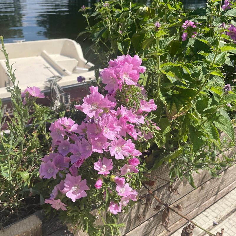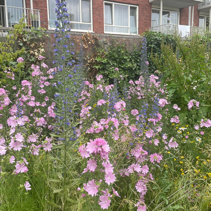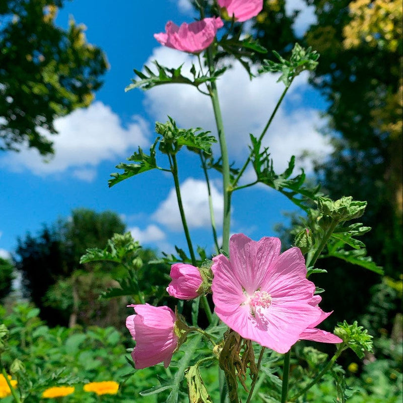 Een heerlijke muskusachtige geur verspreidt deze Malva tijdens z'n bloeimaanden. Die geur trekt allerlei vlinders, bijen, hommels en andere insecten aan.
