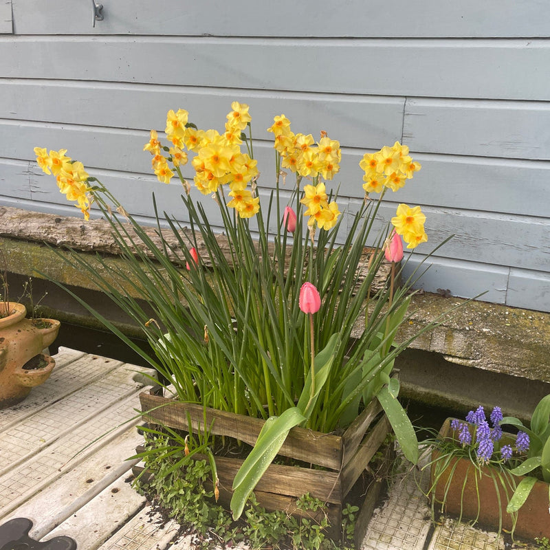 Uit elke bol komen tot wel vijf tweekleurige bloemetjes, die in trosjes naast elkaar staan. Het lijkt wel of je tuin vol staat met windmolentjes waar kinderen mee naar het strand gaan. Zo wil je toch je voorjaar beginnen? Narcis Martinette doet het ook uitstekend in een pot. Gaan bovendien jaren mee. Wordt zo'n 30 à 40cm hoog. Keuze uit 5 of 20 bollen per zak. Biologisch gekweekt, natuurlijk.