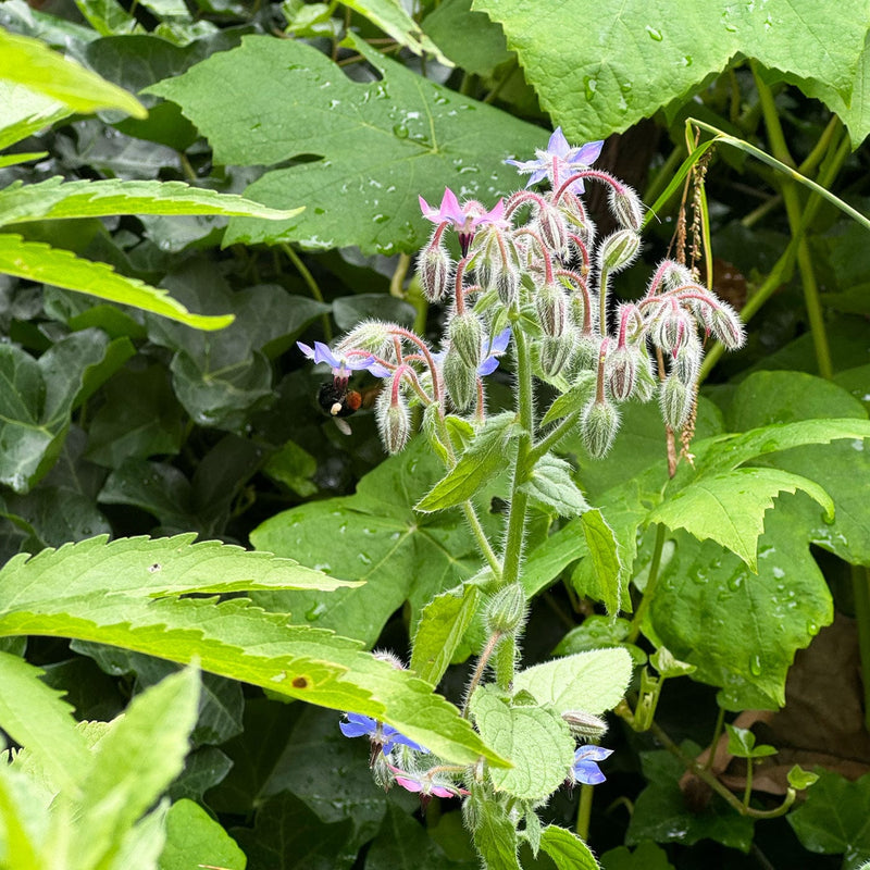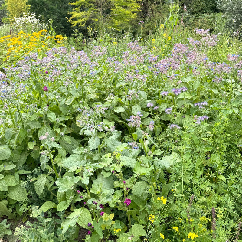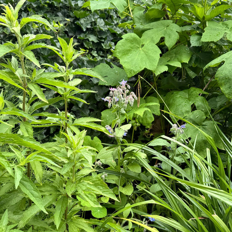 Een harig maar smakelijk type, dit komkommerkruid of borage. Oorspronkelijk uit het Middellandse Zeegebied, maar al lange tijd goed ingeburgerd in de Hollandse aarde. De blauwe bloemetjes zijn niet alleen liefelijk, ze zijn ook te eten. Kun je dus echt de blitz mee maken in salades, zowel qua smaak (lekker fris komkommerig) als looks (wanneer eet je nou iets blauws? Nou?). Ook de jonge blaadjes zijn te eten en lekker.