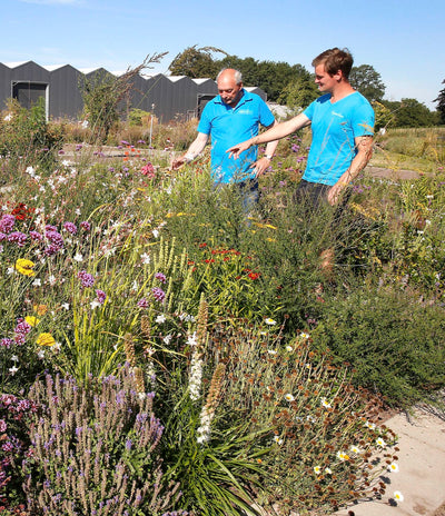 Biologische tuinplanten worden gekweekt zonder kunstmest en zonder chemische pesticiden. Dit valt onder Europese wetgeving. Bij de kweek van bio-tuinplanten komt er dus geen gif in de lucht of het water. Bovendien weet je met bio-tuinplanten zeker dat insecten veilig bij jou kunnen komen snoepen. De meeste van onze bio-tuinplanten worden gekweekt buiten of in de koude kas. Je krijgt ze klein, bij jou groeien ze groot! Je herkent bio-tuinplanten aan het groene vlaggetje.