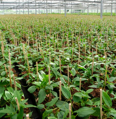 Hoogeveen is een gigantische kwekerij, met locaties voornamelijk in het Westland. Een deel van de kweek is biologisch, zoals de fruitstruiken, die heel Europa doorgaan. De biologische teelt gebeurt op aparte locaties.