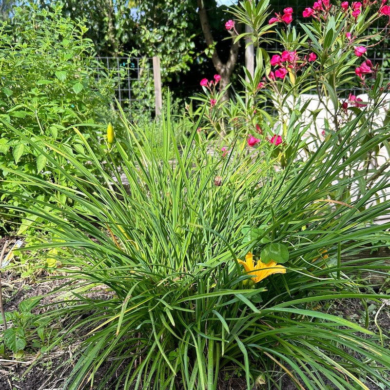Daglelie (Hemerocallis) is een dankbare plant voor op een zonnige of halfzonnige plek en stelt weinig eisen aan de bodem maar mag niet al te droog staan. De plant groeit in een pol, de bladeren zijn smal en lang en vallen wijd uiteen en geven samen een gras-achtig effect.