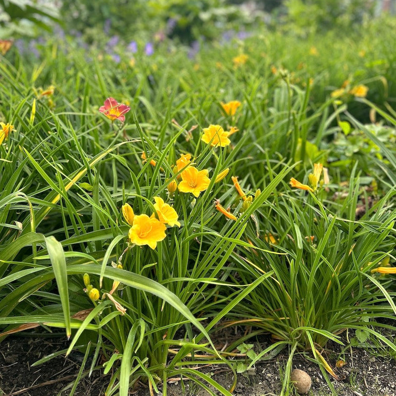 Daglelie Stella d'Oro groeit flink groot uit. Met vijf planten en een beetje geduld vul je een hele vierkante meter.