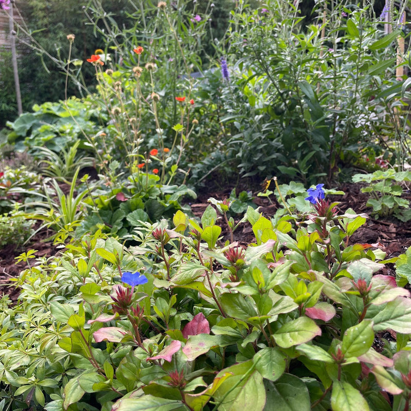 Loodkruid, tuinplant met blauw/paarsachtige bloemetjes