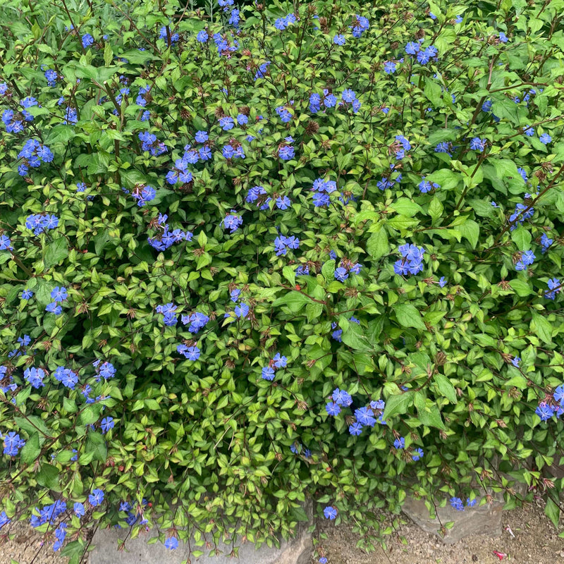 Prachtige bodembedekker. Loodkruid blijft laag, kruipt vanzelf in de rond en is prachtig langs randjes, langs paden, aan de voorkant van de border, in muurtjes...Eind zomer schiet 'ie in bloei met felblauwe bloemen. Niet veel later kleuren de groene bladeren dieprood. Mooi!