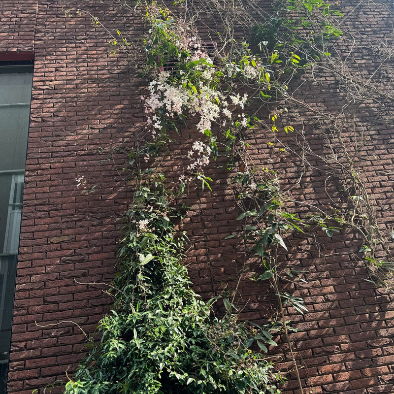 Deze Clematis is wintergroen en heeft daarnaast als voordeel dat de donkergroene bladeren groen blijven in de winter. Hij slingert zich vast met ranken, dus help hem de lucht in met latjes of touwtjes indien nodig. Snoei de plant na de bloei, als deze te groot dreigt te worden.