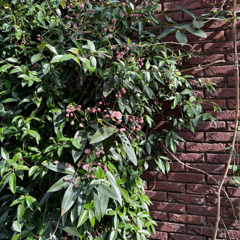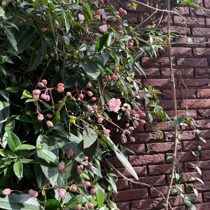 Deze wintergroene clematis geeft in het voorjaar flink veel roze bloemen die ook nog eens heerlijk ruiken. Deze klimmer is een snelle groeier dus jouw, schutting, hek of pergola is snel bedenkt met het donkergroene blad. Wordt uiteindelijk ongeveer  4 meter hoog. Staat graag op een plek in de zon of half-zon in een beetje vochtige grond.