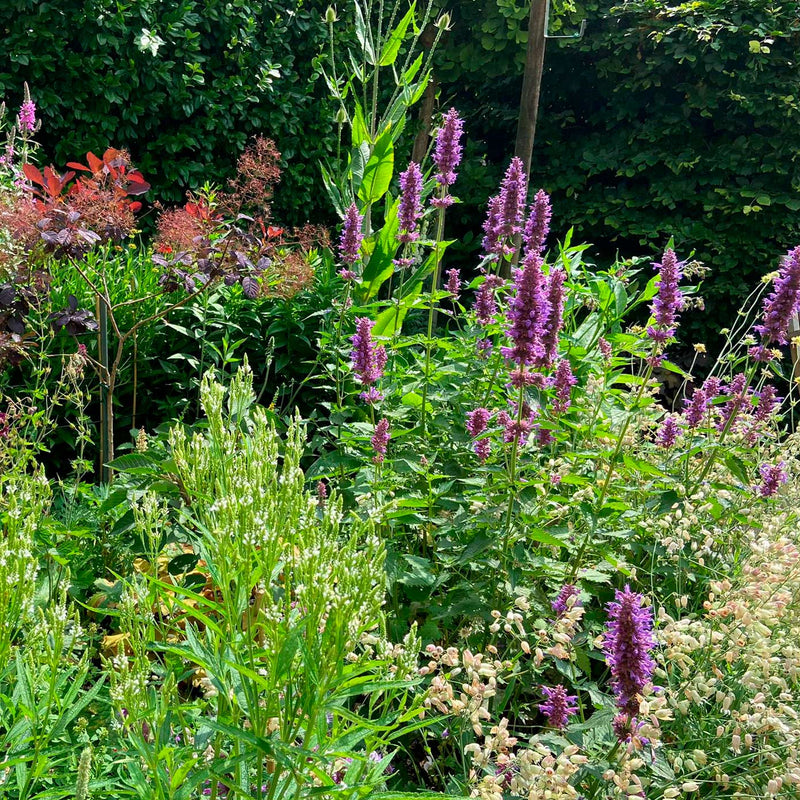Oh wat ruikt deze lekker! Dropplant is dan ook een echte bijentrekker. Deze variant, Blue Boa, kan wel een meter hoog worden en de bloeiende aren wel 15cm lang.