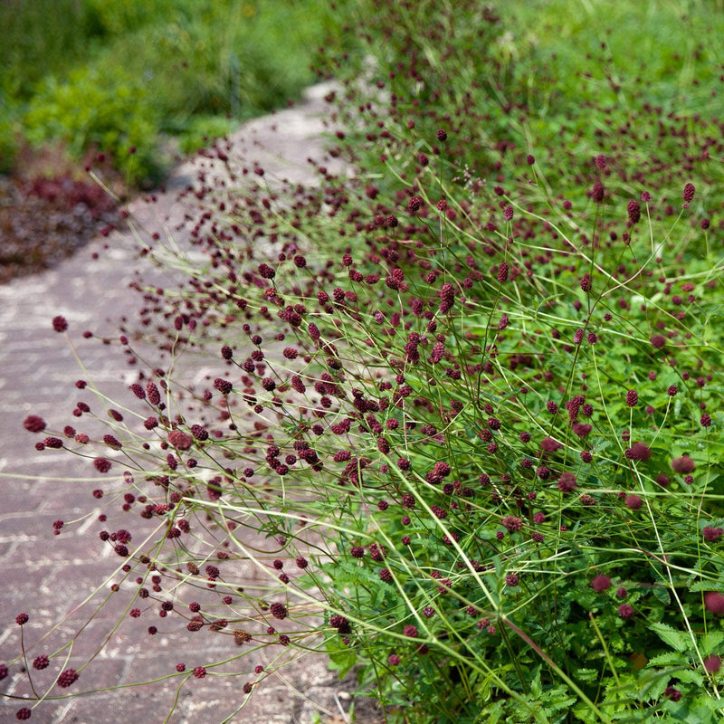 Deze soort 'Tanna' is net even anders dan haar grote zus Sanguisorba officinalis. De cultivar Tanna is compacter en blijft lager; ze groeit tot ongeveer 60 - 70 cm en haar donkerrode bloemen zijn kleiner. In het geheel wat fijner en subtieler. Ideaal dus voor lage borders, rotstuinen, of om een luchtige structuur te creëren zonder te overheersen.