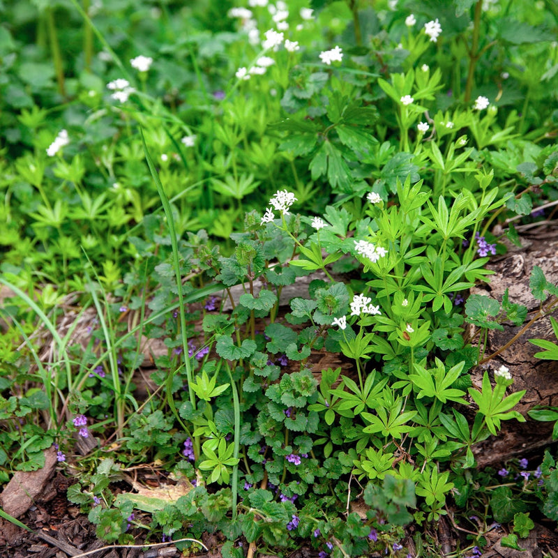 Dit lieve, inheemse, eetbare plantje is een fijne bodembedekker. Door ondergrondse wortelstokken breidt ze zich makkelijk uit en vormt ze na een paar jaar een heel tapijtje. Lievevrouwebedstro bloeit in het late voorjaar met helderwitte, stervormige bloemetjes die een zoetige geur verspreiden. Het is een vaste plant, goed voor jarenlang plantplezier. Biologisch gekweekt, natuurlijk.