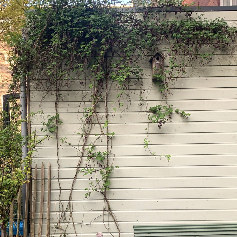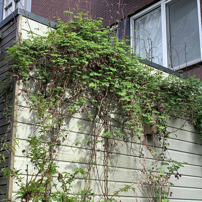 Akebia quinata komt van oorsprong uit China en hecht zich niet maar groeit slingerend omhoog. Jij moet er dus voor zorgen dat 'ie iets heeft om zich aan op te trekken. Wordt ook wel chocoladerank of klimbes genoemd.