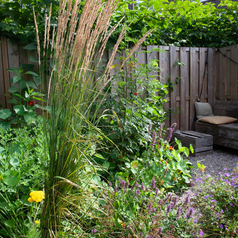 Calamagrostis geeft smoel aan elke border! Heeft minstens 5 uur volle zon per dag nodig om gelukkig te zijn. Dan verschijnen de mooie aren in de zomer om daar tot in de herfst boven het groen te staan wuiven. Het gras kleurt in de herfst langzaam bruin, maar de plant blijft verdord wel je hele tuin sieren de hele winter lang met z'n mooie winterbeeld. Zo houd je toch vorm in je tuin, en een plek voor beestjes om in te schuilen.