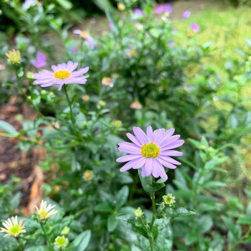 biologische zomeraster, kleine paarse bloemen met geel hart