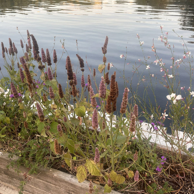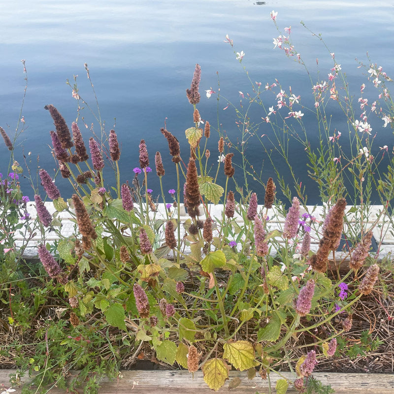 Mmm dropplant geurt zo heerlijk! De hele zomer ruik je een anijsachtige, zoete muntgeur, daarom wordt deze plant ook wel anijsplant of koreaanse munt genoemd. Zowel bloemen als blaadjes zijn eetbaar. Vlinders en bijen zijn ook dol op de grote paarse aren. Wil graag een plekje in de zon.