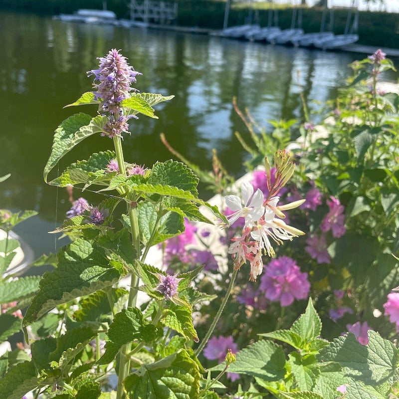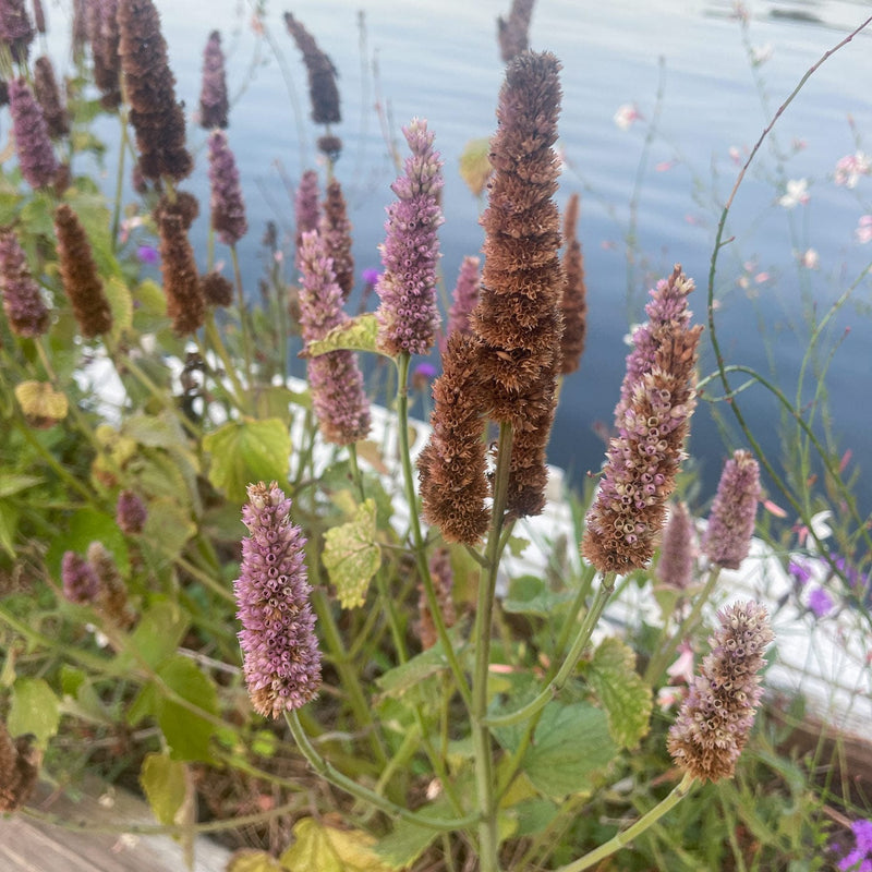 Bijen, vlinders en andere types zijn dol op Agastache, je kan dus flink wat gezoem verwachten. De bloemen houden het ook best een tijdje uit in een vaas. Nog een plus: in een zachte winter geeft Dropplant rugosa een prachtig winterbeeld: de uitgedroogde aren geven een mooi silhouet in je tuin en geven bijvoorbeeld spinnetjes een plek om te leven.