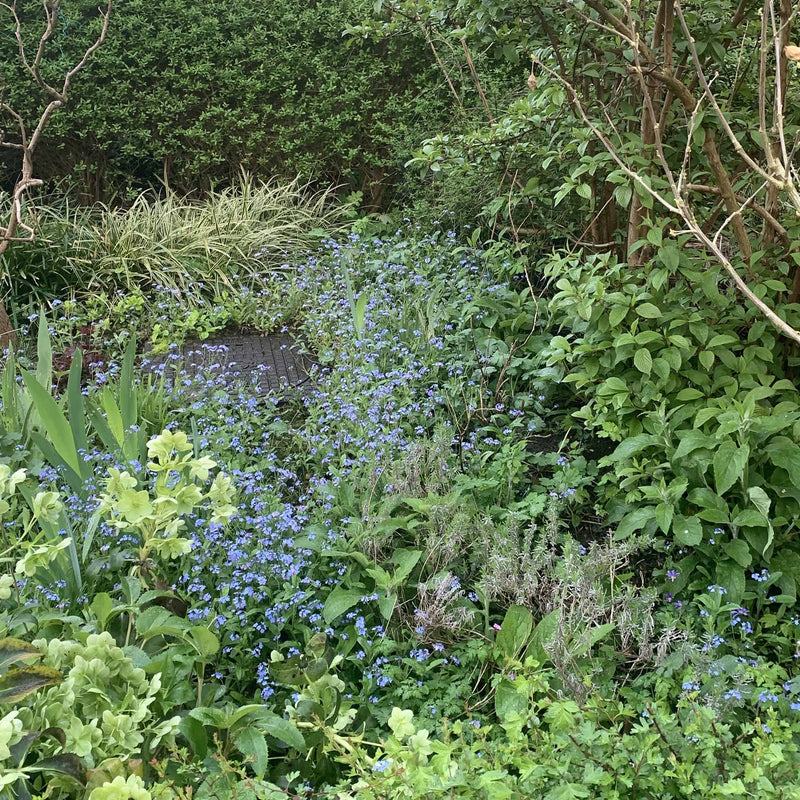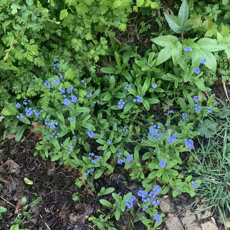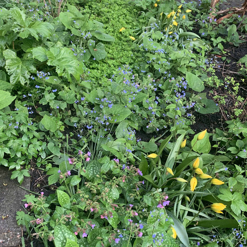 Liefste must-have plantje voor schaduw of half-zon. Dit vergeet-me-nietje heeft een mooi groen, ruw blad in de vorm van een hart. De helder blauwe bloemetjes bloeien van april tot juni.