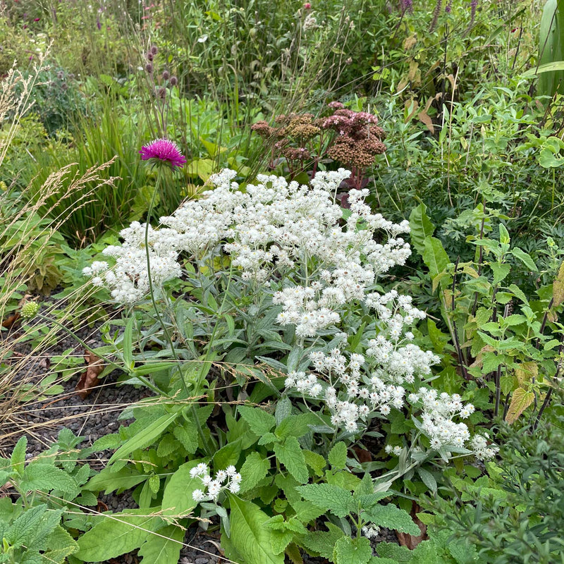 Met deze plant wil je knuffelen! De bladeren zijn viltig, de bloemetjes zachte dotjes wit. Anaphalis triplinervis is prachtig zilvergroen van kleur, en zorgt voor een lichte plek in je tuin. Doet het goed in de zon op grond die niet nat blijft.