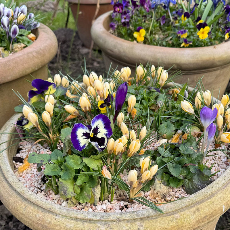 Plant Krokus Romance in het najaar- met de wortels naar beneden- ongeveer 10-15 cm diep. Plant je ze te ondiep, dan gaan de vogels ermee vandoor! Ze is winterhard en onderhoudsarm. Wist je dat een krokusbol die in de winter in de grond blijft eerder bloeit dan een net geplante bol?