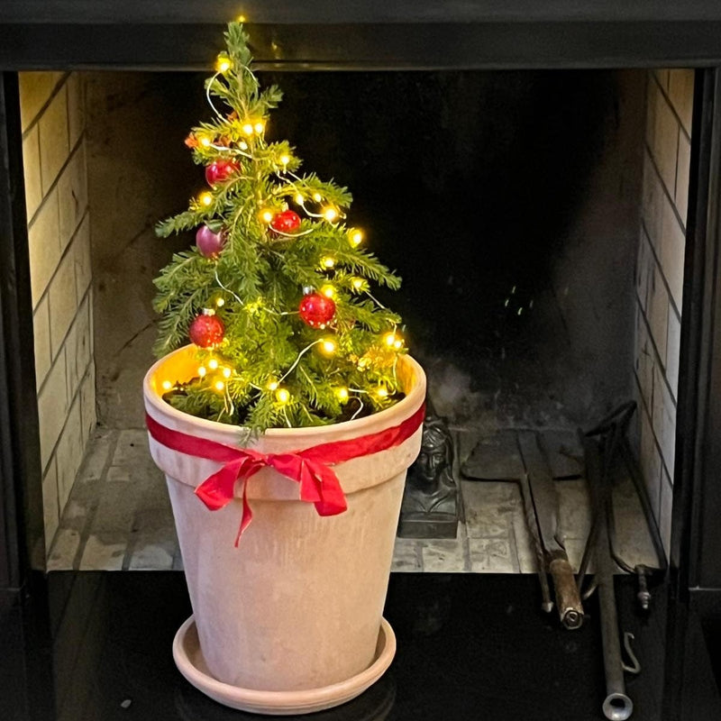 Biologisch kerstboompje voor in de tuin of op je balkon, die prima een maandje naar binnen kan voor kerst! Voor jaren knusse kerstgezelligheid. Haal je 'm naar binnen? Zet 'm dan uit de buurt van de verwarming en in een pot met aarde een geef 'm lekker veel water.