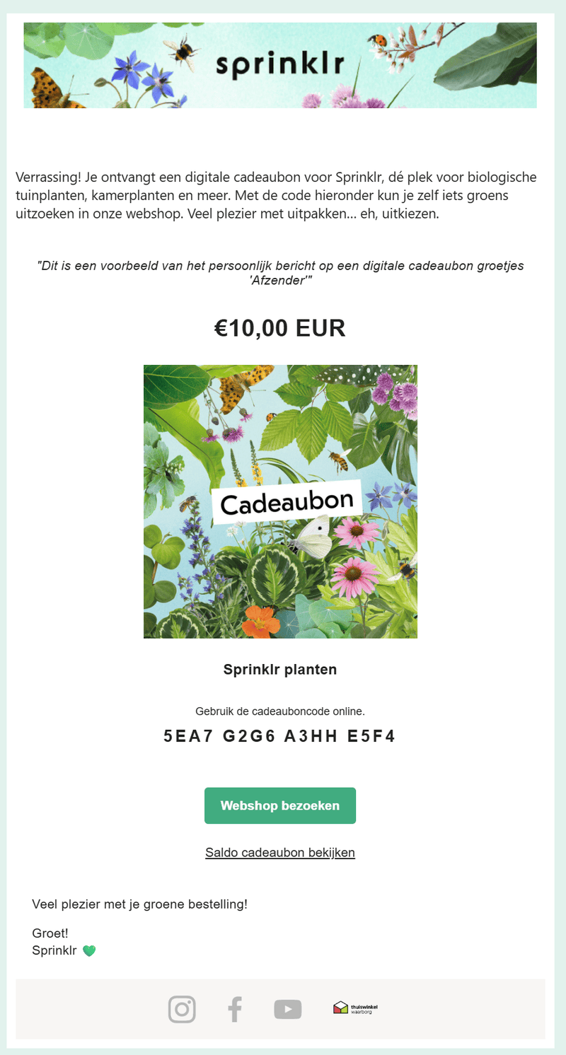 De digitale cadeaukaart valt niet onder de gratis bezorging vanaf €49,-