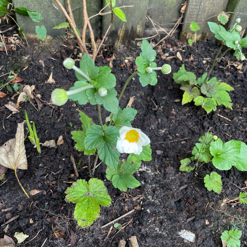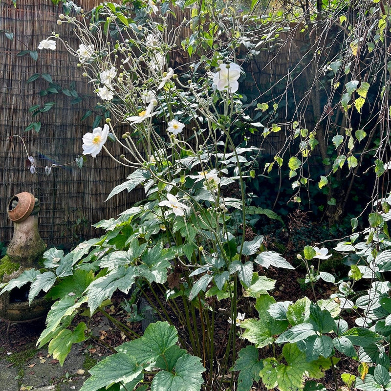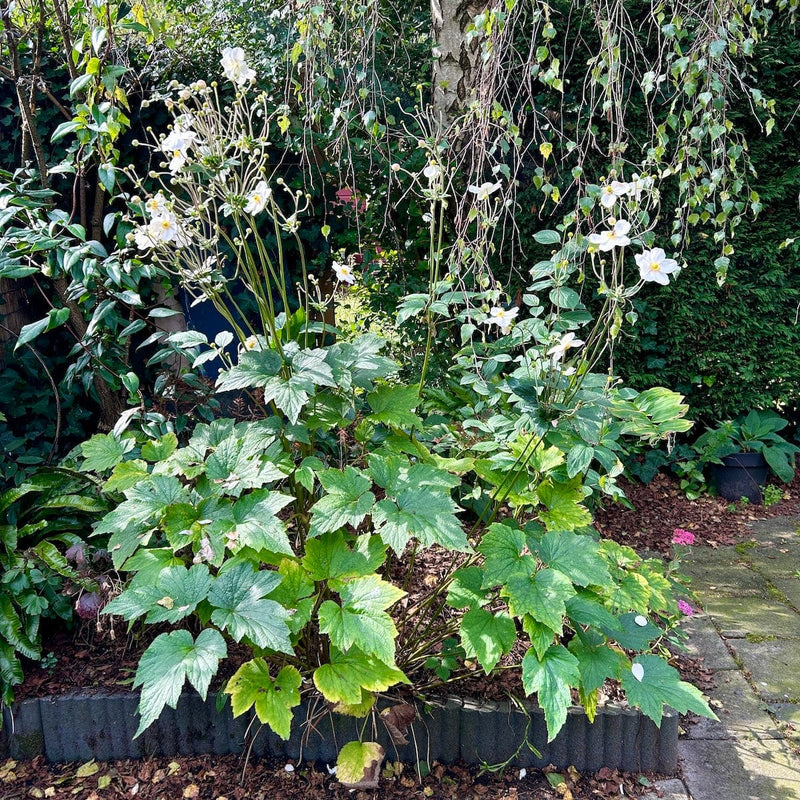 Must have in je border! De lente en zomer lang groen, en dan net als de treurnis over het einde van de zomer bezit van je neemt, komt deze herfstanemoon tot bloei met liefelijk witte bloemen van augustus tot in oktober.