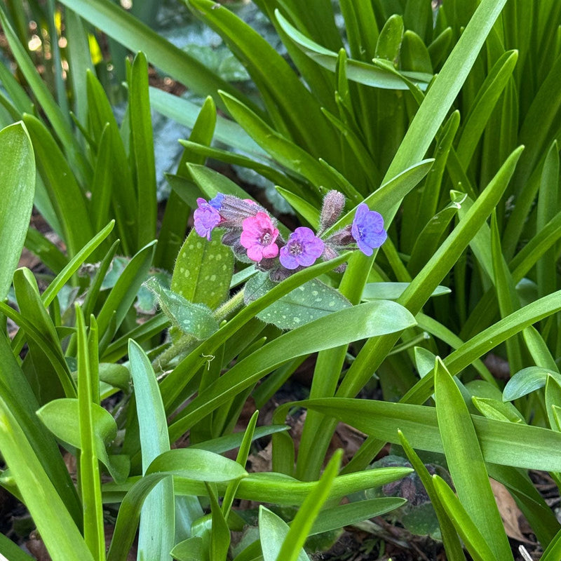 Pulmonaria Trevi Fountain bloeit al vroeg in het jaar en is dus een feestmaal voor de vroege bij. De bloemetjes beginnen blauw-paars en verkleuren naar roze door bevruchting. Een roze bloemetje heeft dus bezoek gehad, zo gezellig!