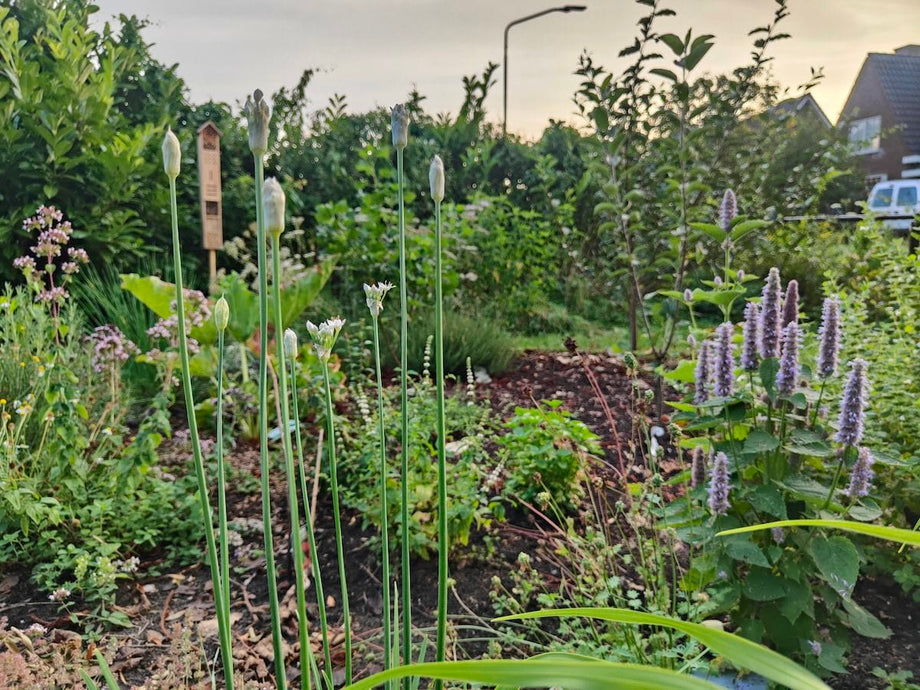 "Bijna elke week zet ik een kruidenboter op tafel, al 3x rabarbercompote gemaakt, de eerste frambozen en aalbessen zijn al geplukt en ik kan elke dag genieten van een kopje thee uit eigen tuin. Het is echt genieten zo'n voedselbos!" ~ Sanne