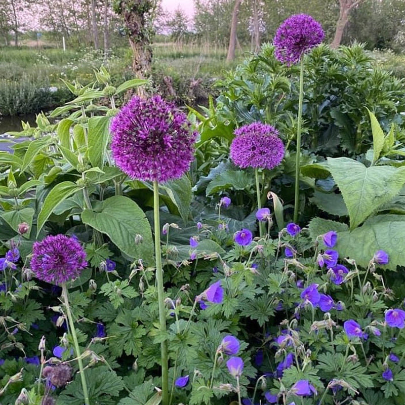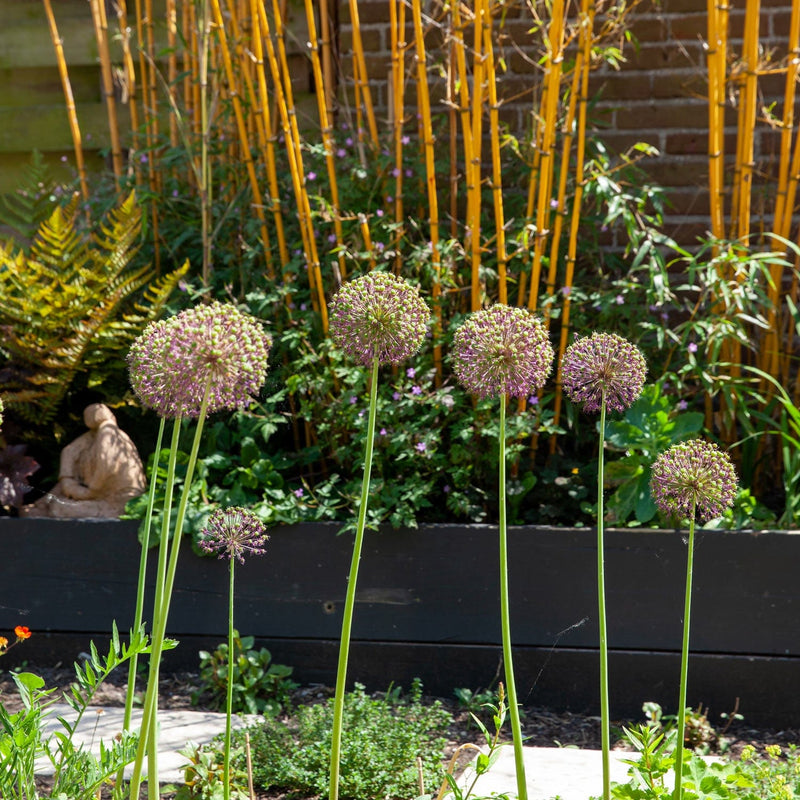 De Allium Purple Sensation is een van de meest geliefde Alliums vanwege zijn dramatische kleur, hoogte en veelzijdigheid in de tuin of op je balkon. De grote, bolvormige bloemschermen hebben een doorsnede van ca 10 a 15 cm. Zo’n bol bestaat dan uit talloze kleine, stervormige bloemen in een diepe, levendige paarse kleur. Plant er een aantal bij elkaar voor een visueel spektakel in je tuin. Strike a pose!