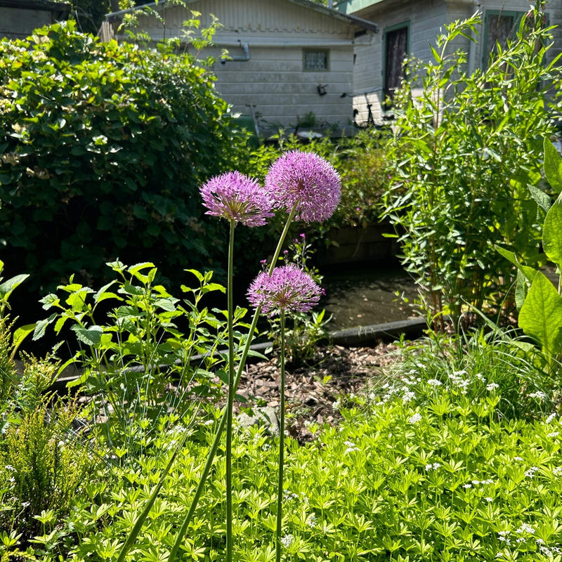 De levendige paarse bloemen trekken een breed scala aan bestuivers aan, waaronder bijen, hommels, vlinders en andere nectarzoekende insecten. Goed voor de biodiversiteit in jouw tuin of je balkon. Want ja ja, deze Allium kan je ook heel goed in een pot planten! Allium Purple Sensation houdt van een zonnige standplaats, maar kan ook lichte schaduw verdragen. Ze doet het goed in goed doorlatende grond en kan ook wat droogte wel aan.