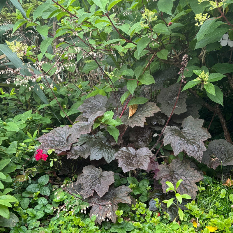 Even wat anders dan groen? Dit purperklokje is prachtig chocoladebruin-rood van kleur. En sjees, wat is 'ie sterk. De bladeren groeien tot zo'n 20cm hoog. In juni-juli steken daar tot wel 60cm witte bloemetjes bovenuit.