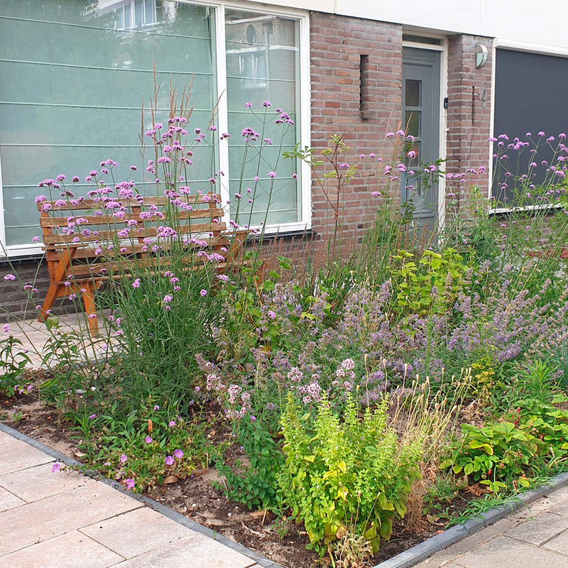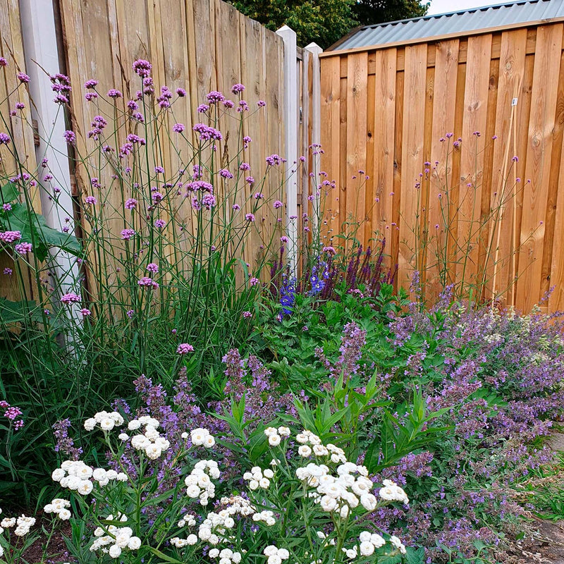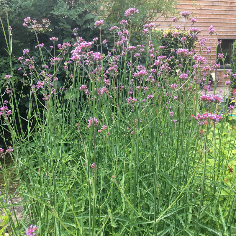 Ohhh zomer! Heerlijke lange wapper die zichzelf gemakkelijk uitzaait. Fier steekt 'ie zo een meter of hoger de lucht in, met tussen juli en oktober schermen van licht-paarse bloemetjes waar vlinders, hommels en bijen dol op zijn.