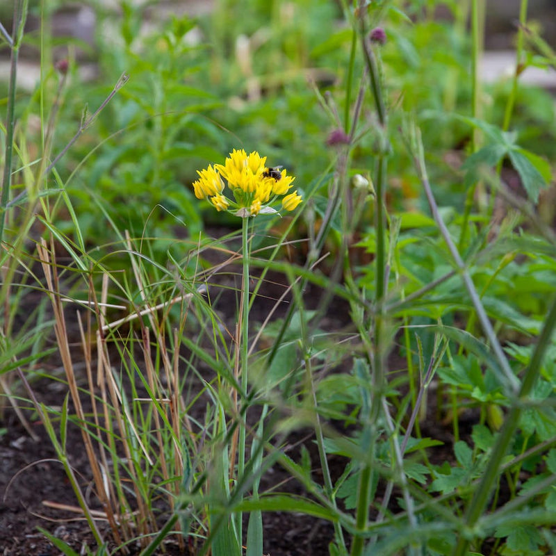 Allium Moly wordt ook wel goudlook genoemd en je ziet gelijk waarom! Dit laagblijvende sieruitje trekt bijen, hommels en vlinders aan. Ze groeit oorspronkelijk op schaduwrijke rotsige hellingen in Frankrijk en Spanje. Hoeft dus weinig zon en weinig water. Verwildert ondergronds, dus elk jaar meer plezier. Bloeit in mei-juni. 15 of 30 bollen per zak. Biologisch gekweekt, natuurlijk.
