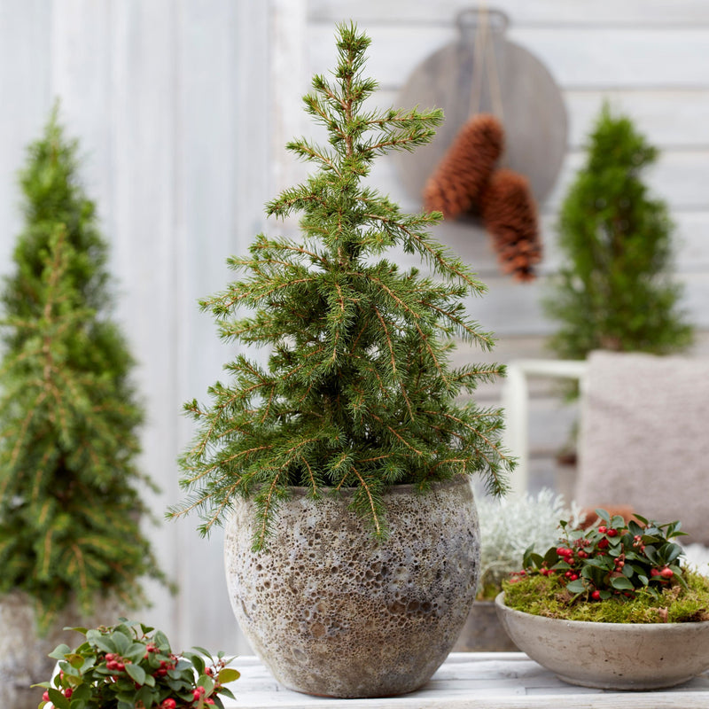 Deze mini-kerstboom is een echt buitenbewoner, en niet geschikt om het hele jaar door in je huis te staan. Gelukkig kan 'ie een maand binnen prima aan. Zolang je de kerstboom maar goed verzorgd: niet in de buurt van de verwarming zetten, in een flinke pot met aarde zetten en regelmatig water geven. Op die manier voorkom je dat 'ie uitdroogt en kan je kerstboompje na de feestdagen gewoon weer naar buiten.