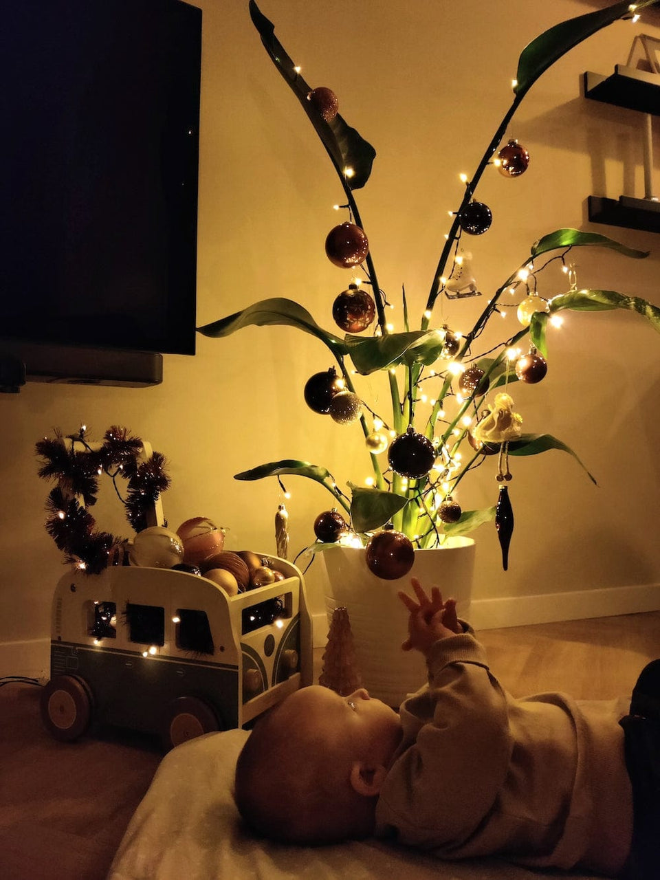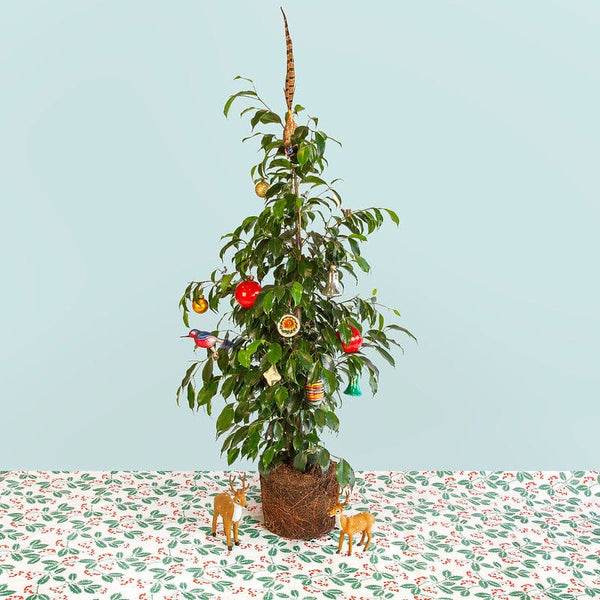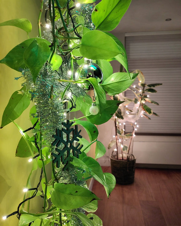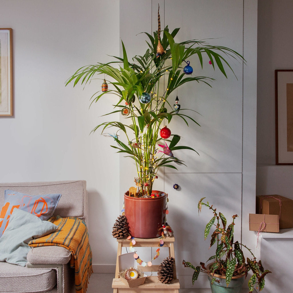 Versier gewoon je kamerplant die al jaren je metgezel is. Of kies een nieuwe metgezel die de komende decennia dienst kan doen als zowel kamerplant als kerstboom. Neem geen kerstboom, maak een kerstplant!