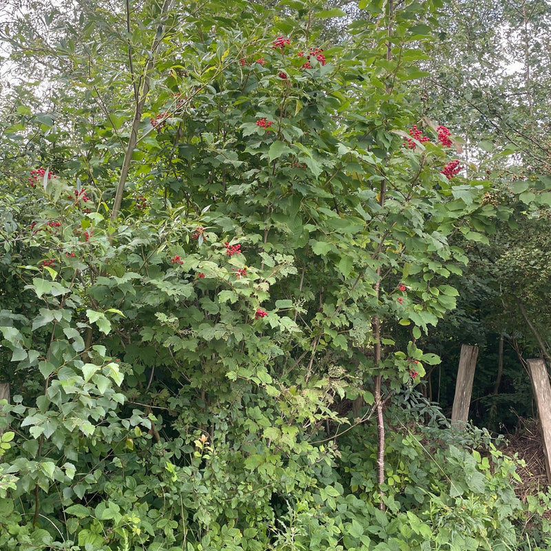 Prachtige inheemse heester die in mei en juni bloeit met grote witte schermbloemen waar nectarslurpers op afkomen. Staat graag in de zon, halfzon of schaduw op voedselrijke grond. Kan wel drie meter hoog worden, maar laat zich makkelijk intomen. In de herfst krijgt de Gelderse roos mooie rode bessen. Na de vorst worden die bessen lekkernijen voor allerlei vogels.
