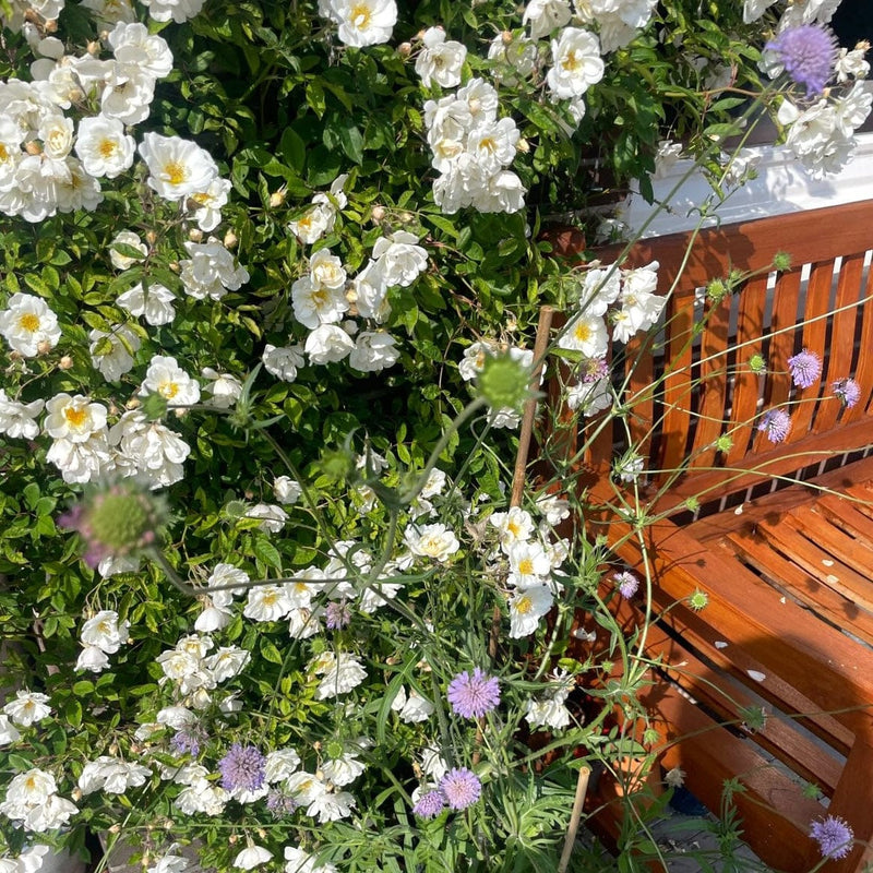 Hmmm heerlijke geur heeft deze biologische klimroos Guirlande d'Amour! Voed 'm goed in juni, vlak voor de bloei. En knip uitgebloeide bloemen weg zodra je kan, dan maakt de plant weer nieuwe bloemen.