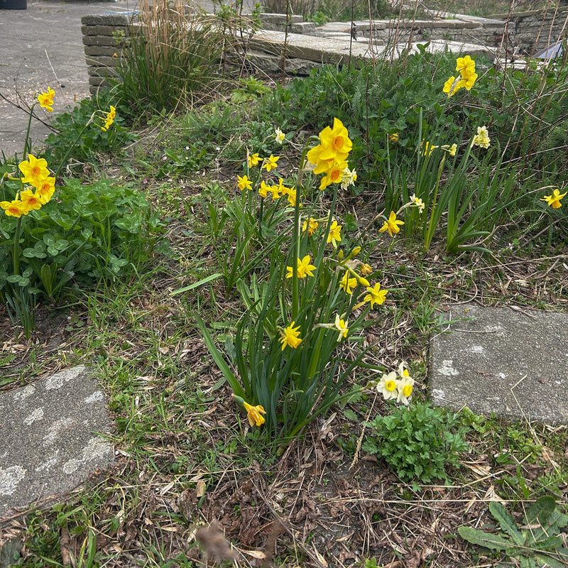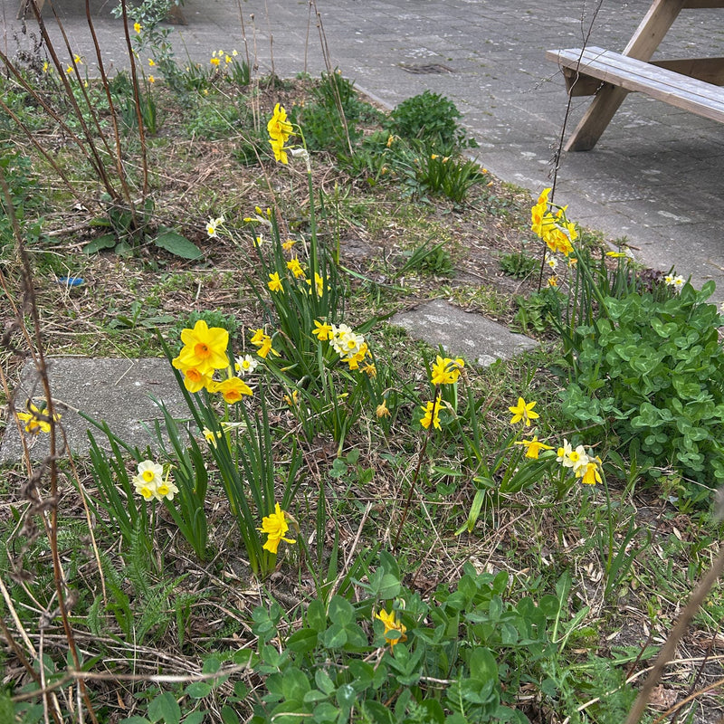 Vier verschillende kleuren geel en wit door elkaar: zo mooi! In dit mengsel zit een aantal bollen die verwilderen, die breiden zich in de loop der jaren ondergronds uit. De andere narcissen kunnen ook prima overwinteren en het jaar erop weer bloeien. Elk voorjaar een tapijt van geel, zo kom je die winterdip wel uit! Geschikt voor een plek in de zon of halfzon.