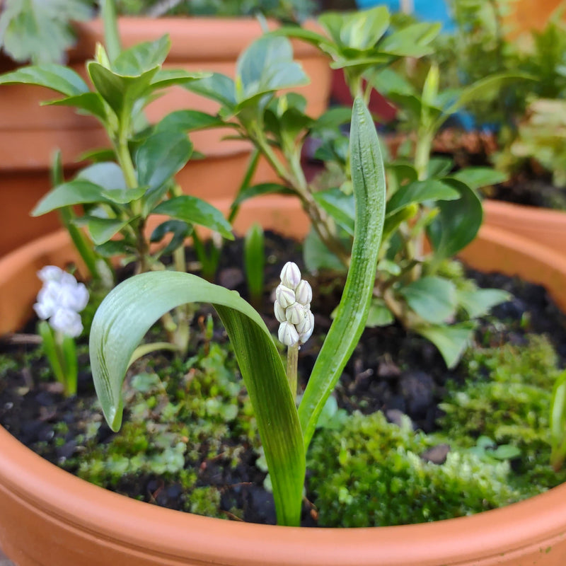 Uit de bol van Puschkinia ontspruiten twee tot drie smalle, grasachtige bladeren en een stengel met compacte trossen spierwitte, stervormige bloempjes, met een soort dicht buisje in het midden. Zo schattig! Doordat ze zo klein is, is ze perfect om voorin je border te staan, of in je rotstuin op zonnige plekken. In de halfschaduw kan ook, hoor, bijvoorbeeld onder heesters of bomen. Het kan zijn dat ze dan wat minder uitbundig bloeit.