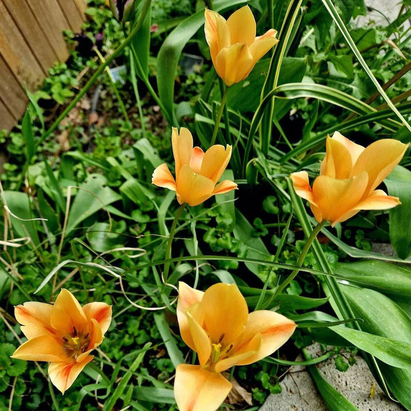 Deze laagblijvende tulp zorgt al voor lekker veel kleur in het voorjaar. Ook de vroege bijen zijn heel blij met Tulp Bronze Charm. Wordt ongeveer 25 cm hoog en bloeit van april tot mei. Ze staat graag in de zon of halfzon. 7 of 30 bollen per zak. Biologisch gekweekt, natuurlijk.