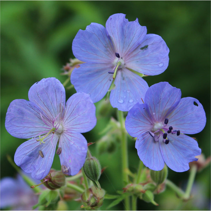 De helderblauwe bloemetjes van deze geranium zijn niet alleen voor ons een feest, ook wilde bijen zijn er dol op. Zij zien zelfs nog een fellere ultraviolette kleur die wij niet kunnen zien. Wil je langer van de bloemen genieten? Verwijder dan alle uitgebloeide bloemetjes eind juli voor een tweede bloei in het najaar. Verder trek je zand- en groefbijen en diverse soorten hommels, maar ook zweefvliegen en dag- en nachtvlinders met deze plant naar je tuin, leven!